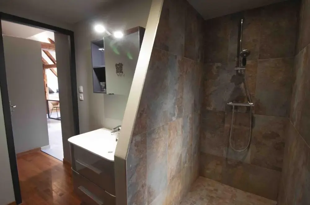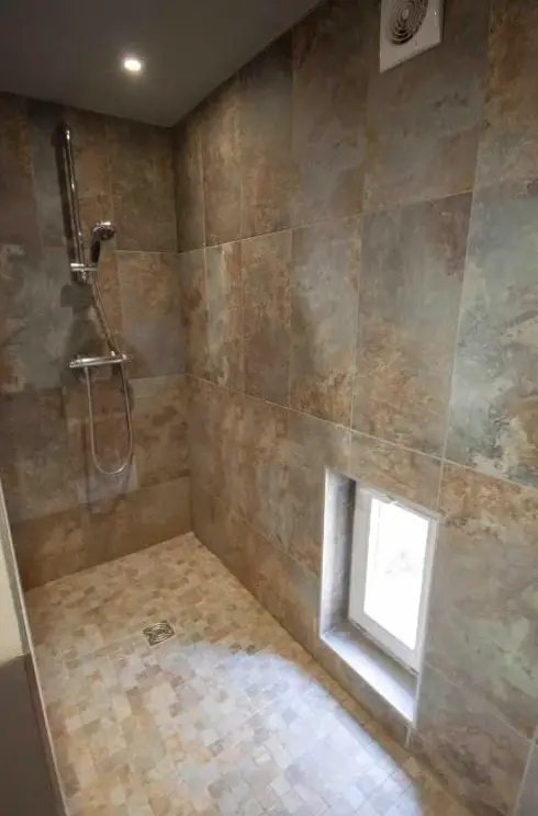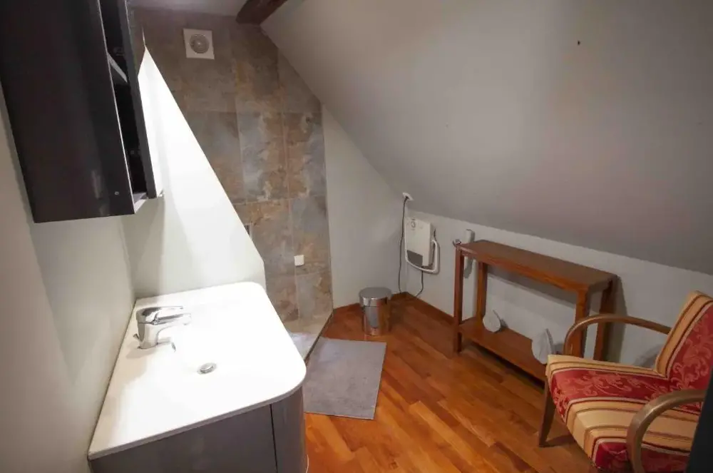 équipement douche très ancien (absence pommeau!)
